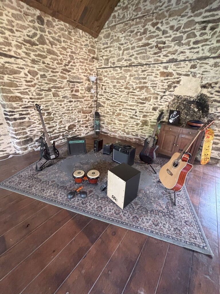 Vous êtes guitariste, bassiste, percussionniste et de passage dans nos gîtes « Aux 12 instants », n’hésitez pas à prendre le temps d’une pause musique et à vous poser au Backstage, à votre disposition dans « La Grange ». Seul.e ou à plusieurs, profitez des instruments pour vous/nous offrir des interludes musicaux fantastiques.